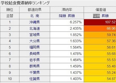 2006年の調査結果によると、全国の44%の学校で給食費の未納問題が起こっており、全国平均で0.98%の児童生徒に未納問題が生じています。全国で最も滞納率が高かったのは沖縄県で6.26%。給食を無償で提供する自治体も増加傾向にあります。